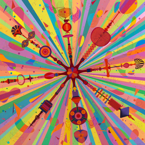 Big Bang. 2010 Oil and serigraphy on DM. 130 x 130 cm