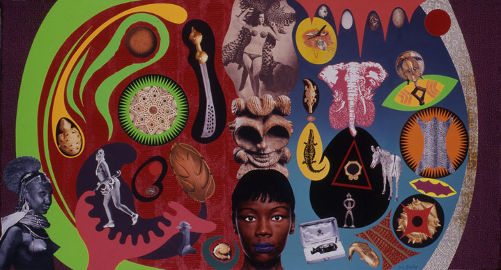 La noche africana The African Night. 2006 Collage on foan board. 65 x 122 cm