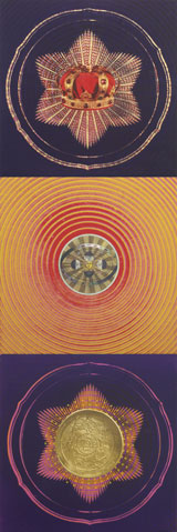 Monarquía Monarchy. 1997-2000 Serigraphy and collage on paper. Triptych of 50 x 50 cm