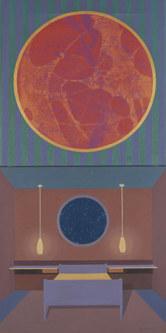Dormitorio en las estrellas Bedroom in the Stars. 2001 Oil on canvas. Díptico. 100 X 50 cm